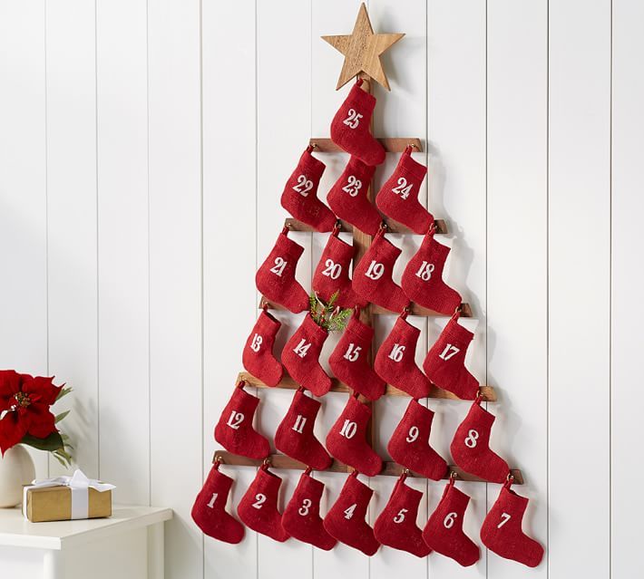 Are you looking for a fun way to countdown to Christmas with your kids? Look no further than a Christmas tree Advent Calendar craft! Not only are these crafts super fun to make, but they also help teach your kids about counting and organization. Cut out a large tree shape from the felt and add some pockets down the front for each day leading up to Christmas. You can also use already present socks to make the Christmas tree advent calendar for you kids.