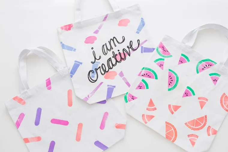 Customize your plain tote bags by hand stamping intricate designs on them. You can even create your own stamps using carving blocks or craft foam and craft paint.
