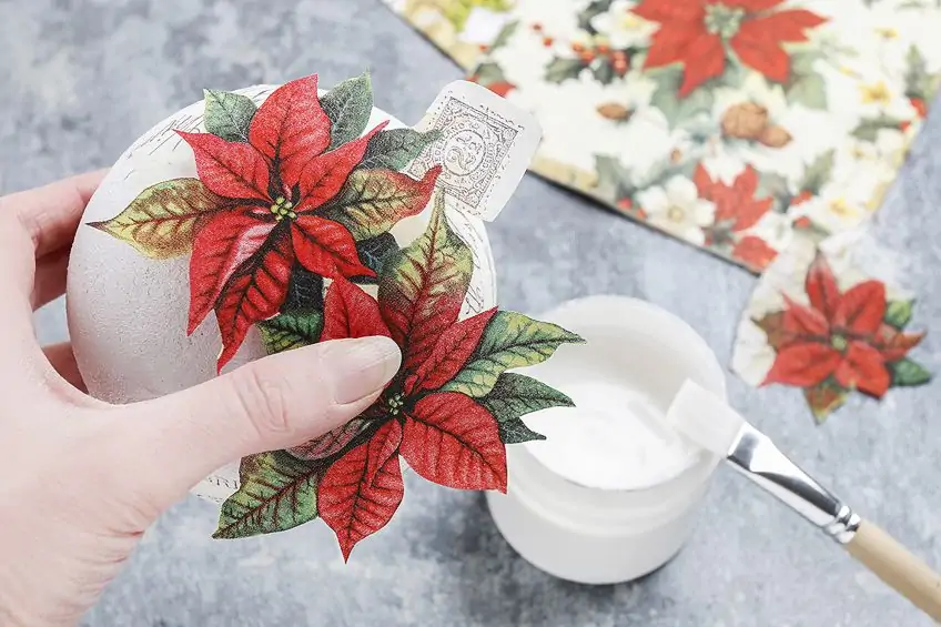 Achieve a unique and personalized touch on your furniture, trays, and decor by expertly decoupaging decorative paper onto their surfaces and sealing them with high-quality varnish.