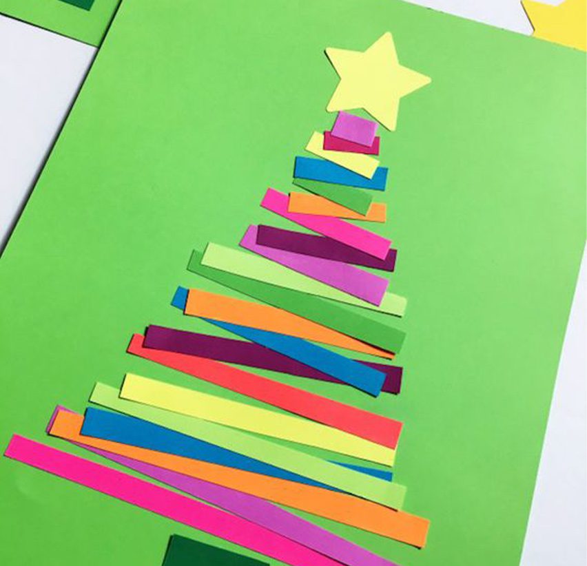 Create 3D Christmas trees using colourful paper strips folded accordion-style. This Christmas craft for kids helps them understand spatial relationships and strengthen motor skills as they fold and glue the strips.