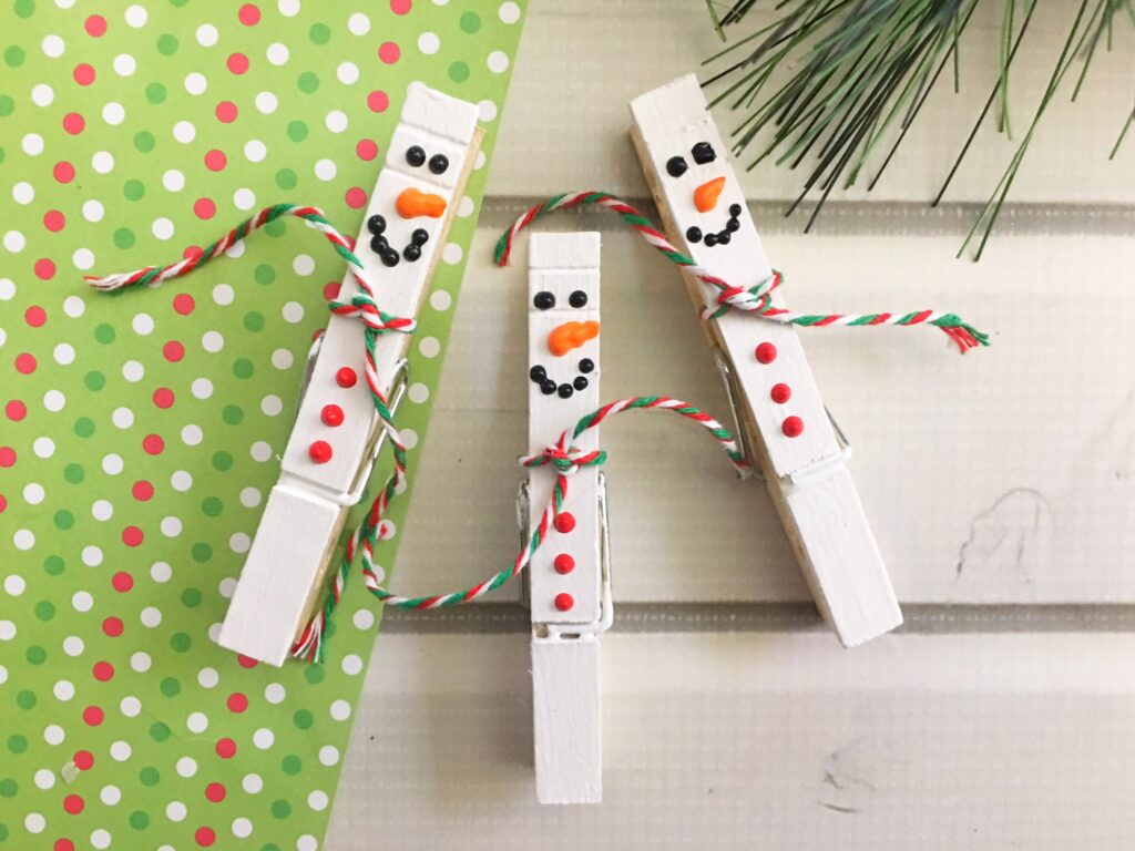 This Christmas card for kids can be used as a card holder. Paint the clothespin white, add goggly eyes, a carrot nose, and a cute hat to turn it into a delightful snowman.