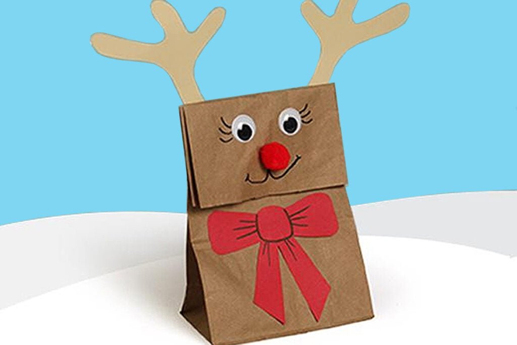 Turn plain brown paper bags into adorable reindeer puppets using construction paper and googly eyes. This dollar tree Christmas craft helps enhance storytelling skills in children and boosts their imagination.