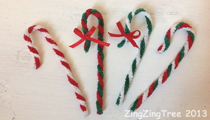 Bend and twist red and white pipe cleaners to make these adorable Christmas decorations. This easy Christmas craft enhances motor skills and hand-eye coordination among kids.