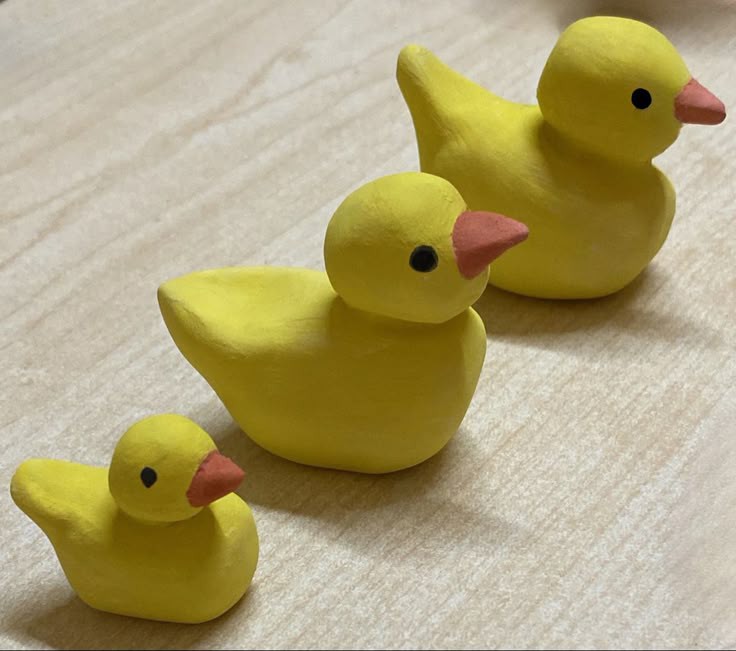 To make cute little clay ducks, start with a small ball for the body. Tappen the edge to give the illusion of clay. Draw textured wings on the sides. And now add a small ball for the head. Add a small cone for the beak and draw eyes. Your duck is ready.