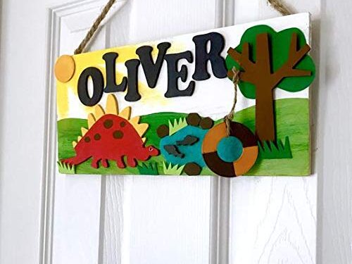 Personalise bedroom doors with dino nameplates made with wooden letters and dinosaur cutouts. This craft gives kids a sense of ownership over their personal space while celebrating their love for dinosaurs.