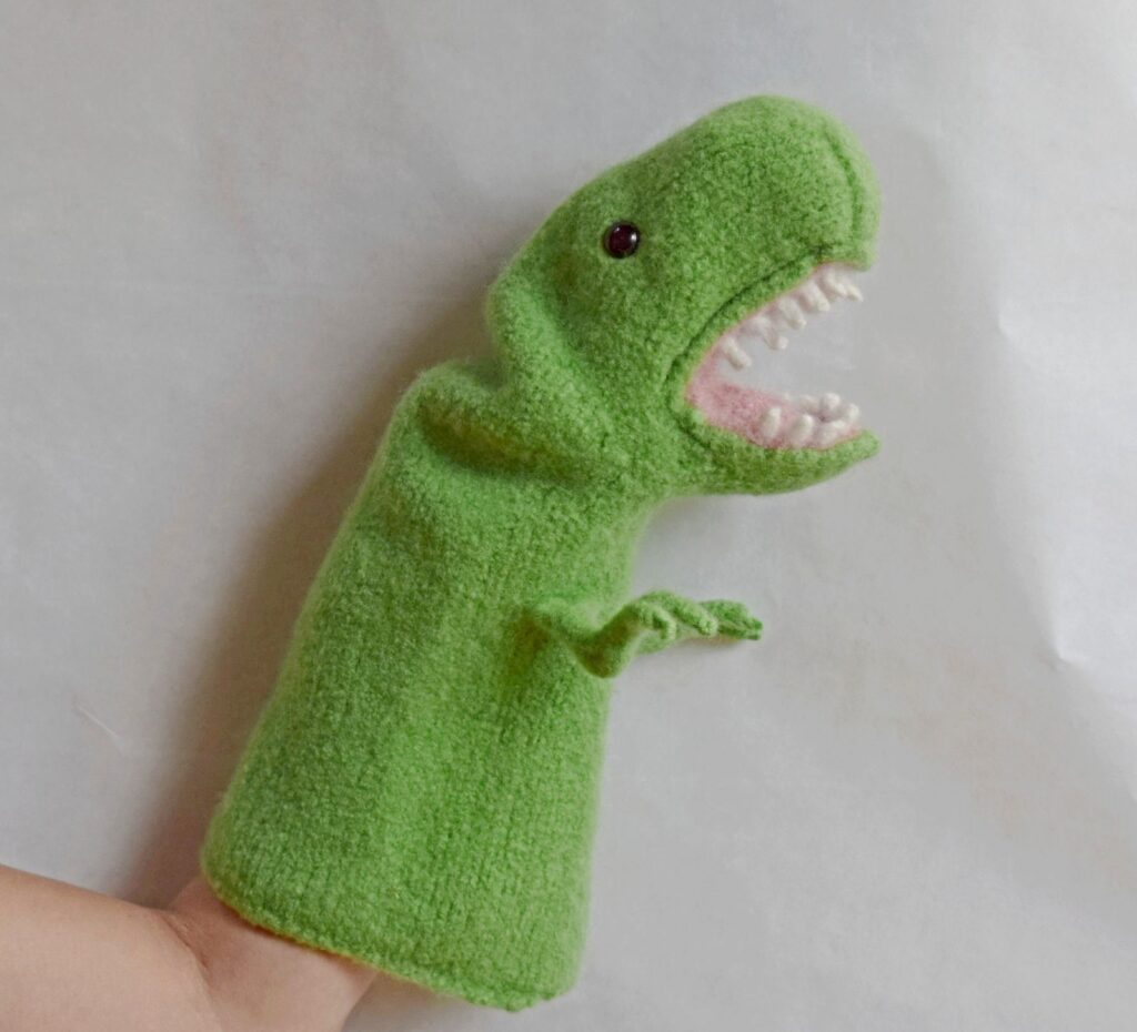 Transform your old socks into a fun dinosaur craft for infants and toddlers. Use buttons and fabric glue to make a dinosaur’s face. This activity encourages sensory skills.
