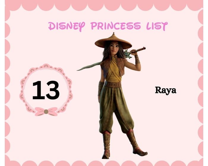 A series of female characters from several Disney animated films who are advertised and promoted as princesses make up the Disney Princess franchise. The Walt Disney Company officially recognised Disney Princesses. There are currently thirteen recognised Disney princesses after an increase in the number of characters over time. Snow White, Cinderella, Aurora, Ariel, Belle, Jasmine, Tiana, Mulan, Merida, Pocahontas, Rapunzel, Moana, and Raya are the names of Disney princesses.