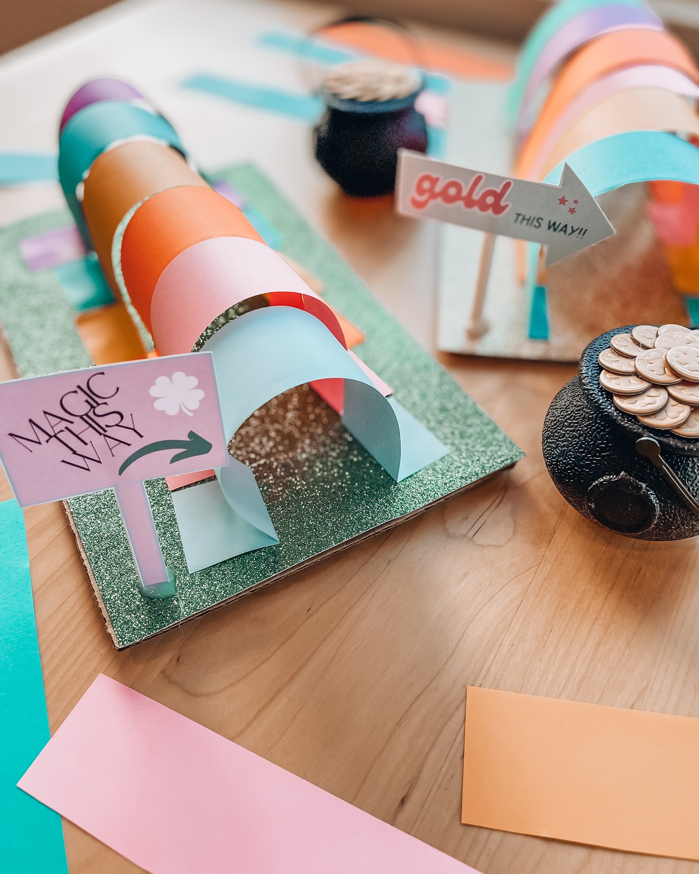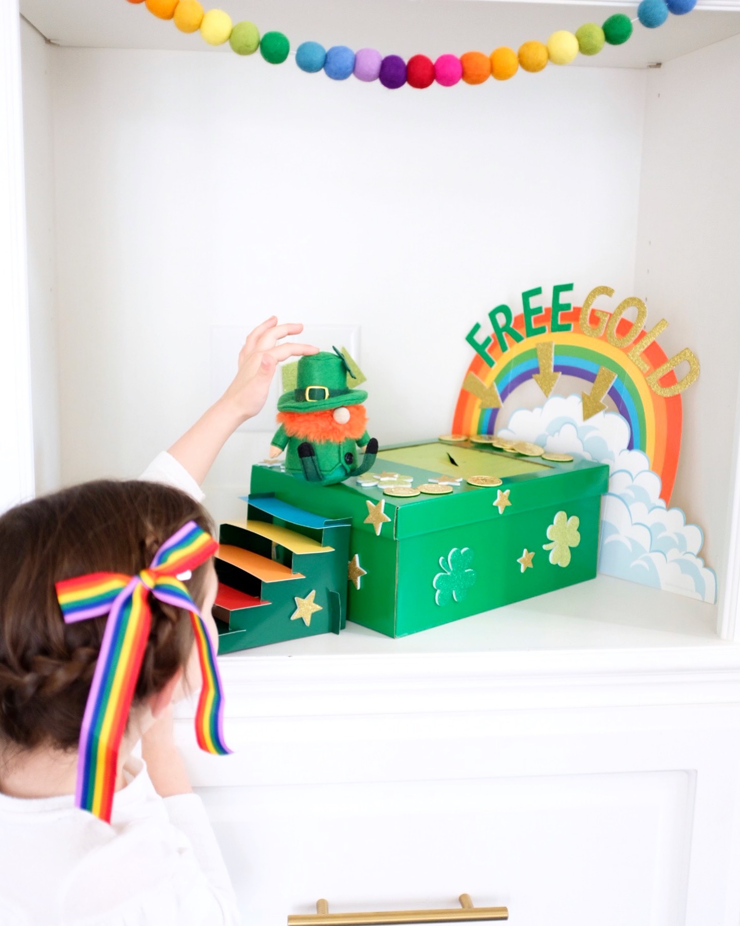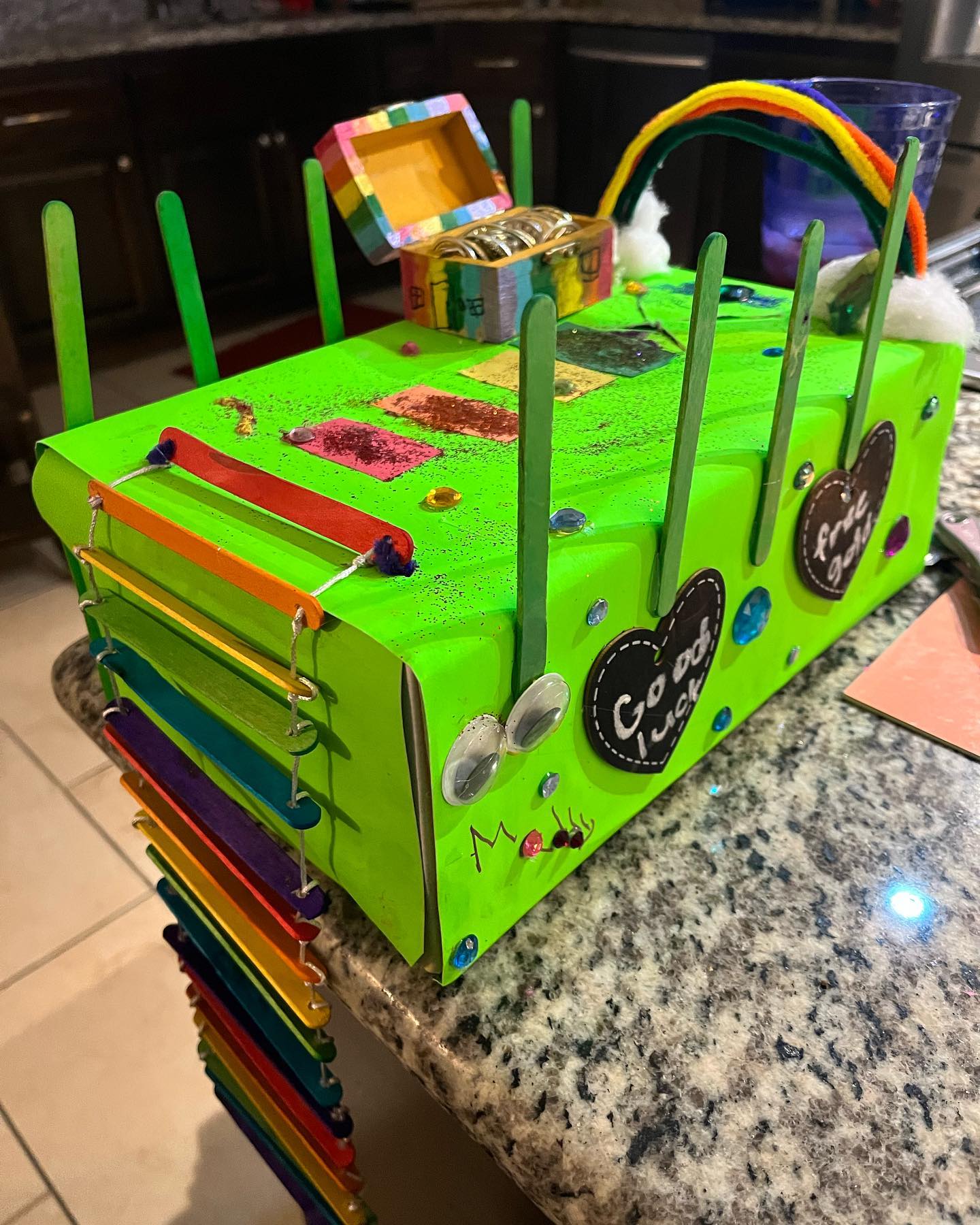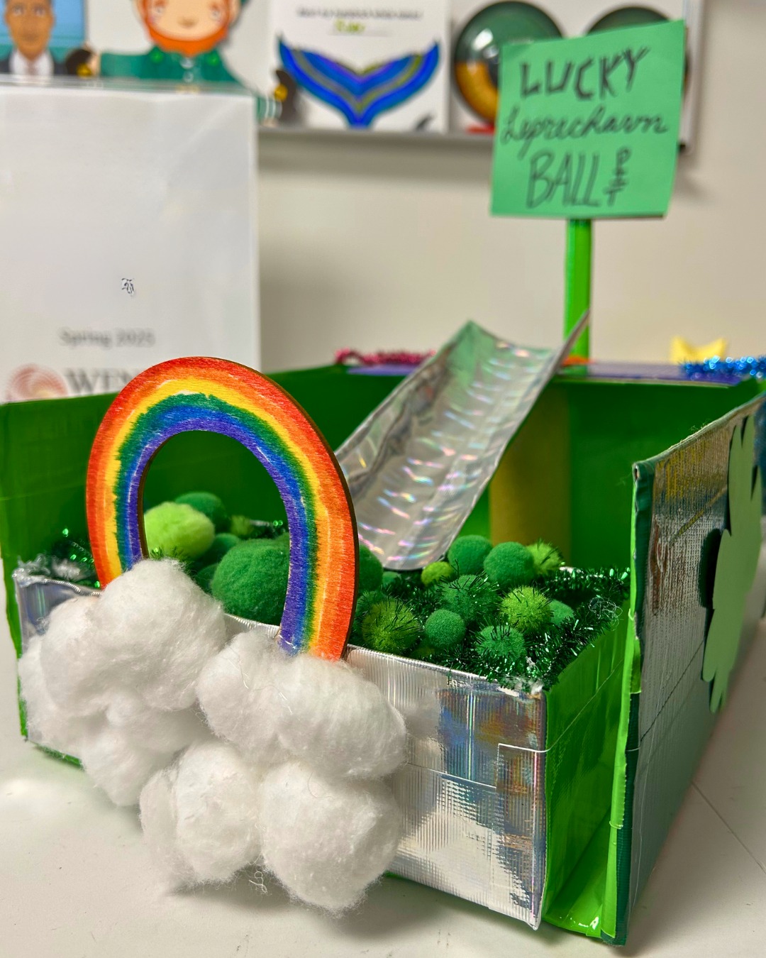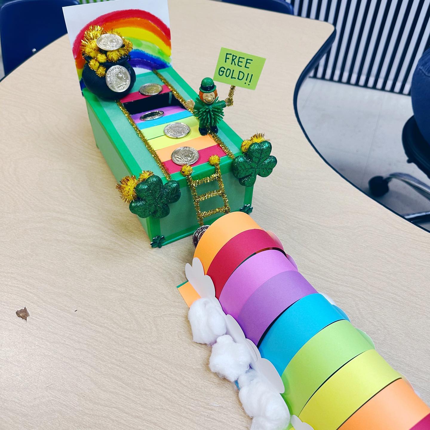 This is a simple tunnel to trap leprechaun trap idea made with colourful papers and a large box. Here, two ideas merge to create a unique craft idea.