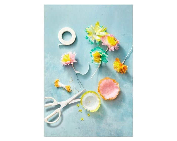 Making long-lasting flowers out of colored cupcake liners will be an incredible craft idea for kids on Mother’s Day. Create petal-like cuts by folding the liners in half. To make fake flower stamens, fold a piece of floral wire in half, wrap it around it, and then poke the wire through the middle of three to four paper liners. The base of the liners should be wrapped in flowery tape, and then the “stem” should be wrapped all the way down.