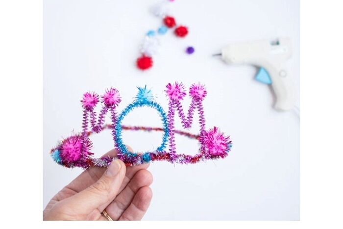 Doesn’t Mom deserve a crown because she is a queen? Pom poms and sparkling chenille stems give this Mother’s Day outfit a festive feel. This is one of the best Mother’s Day craft ideas for kids, and this gift will make her feel special.