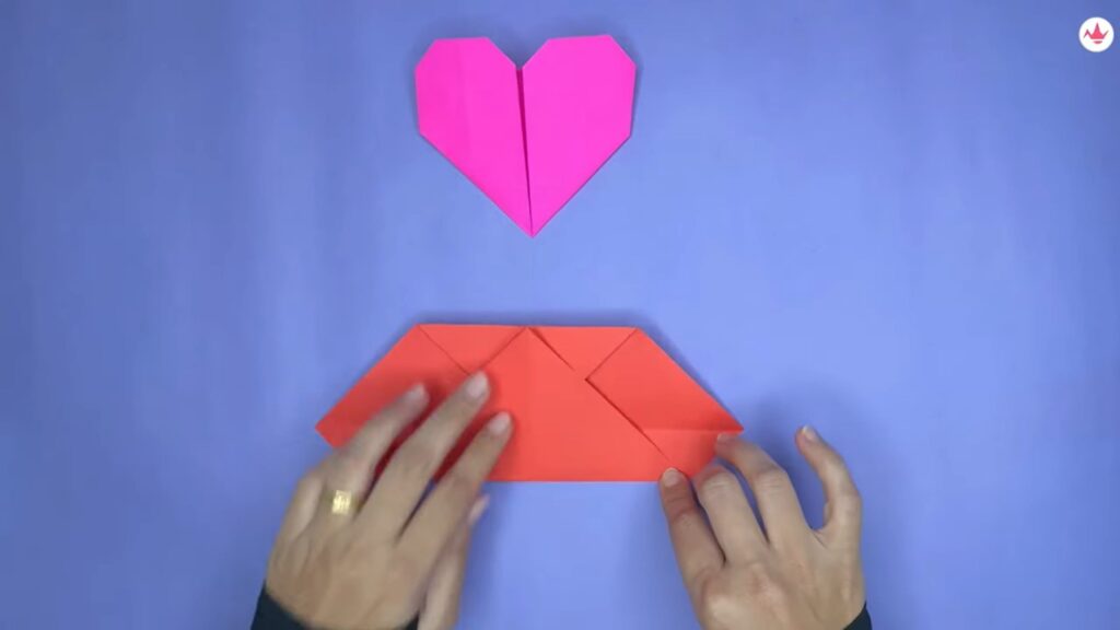 Flip back the paper structure created till now as the heart paper base has been created easily following the origami heart instructions.