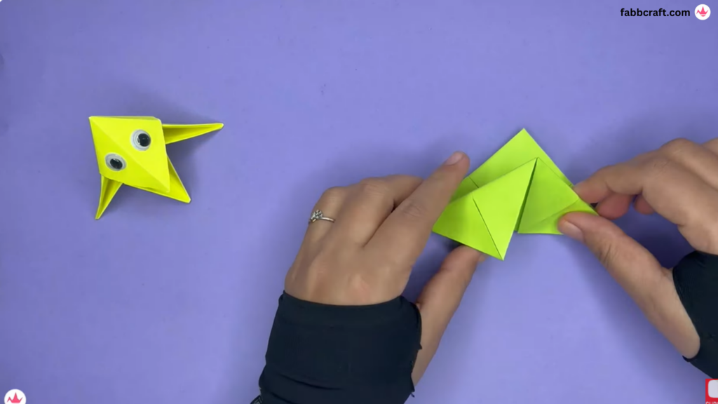 The upturned triangle-type fold will be created at the top which would be the base head of the origami moving toy.