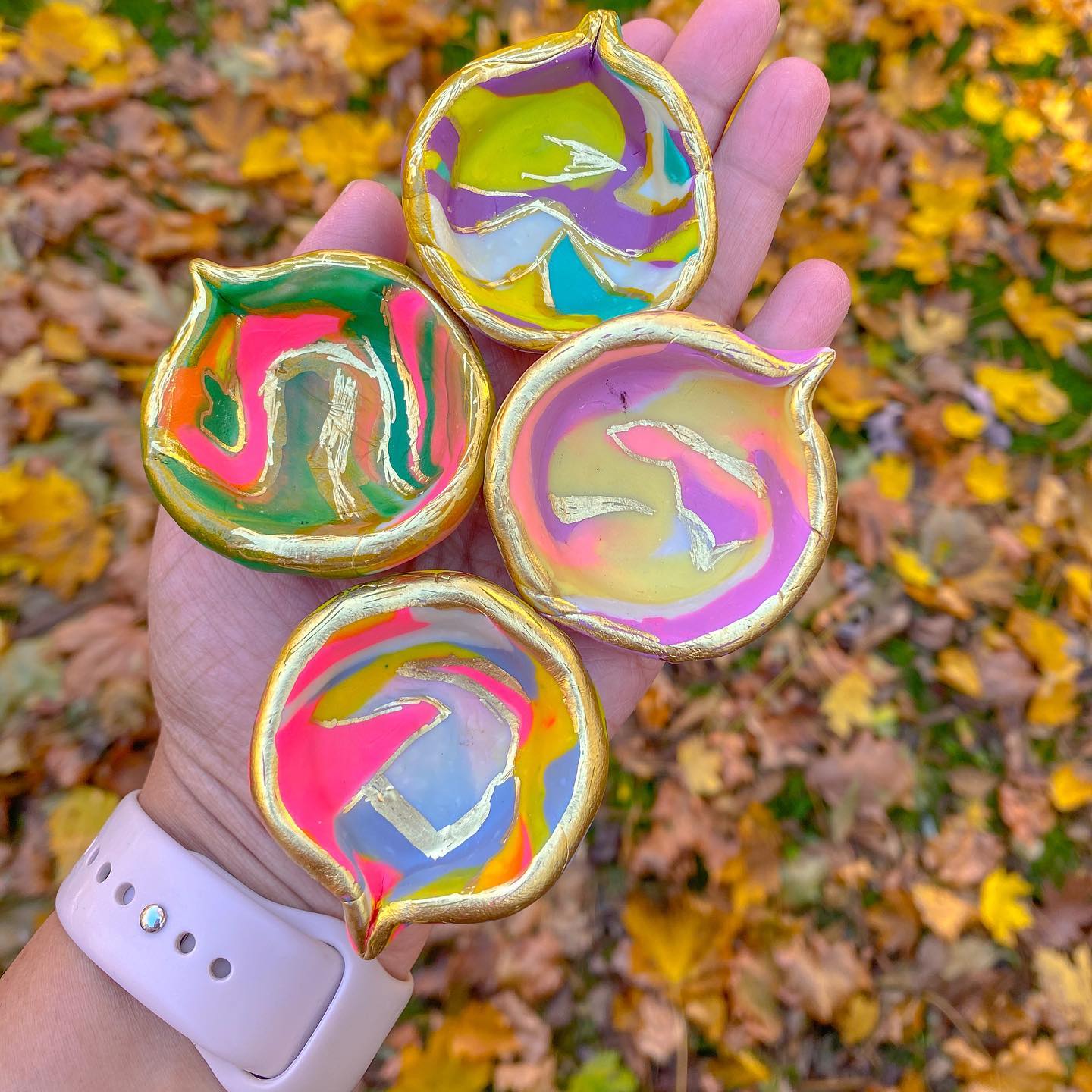 Begin by rolling out your clay and blending your chosen colours to create a marbled effect. To shape your coasters, use egg rings, a large jar, or a bottle to cut out circles, then smooth the edges with a knife before baking. Once they’ve hardened, apply a clay varnish to protect and preserve them. Now, your unique clay creations are ready to be displayed!