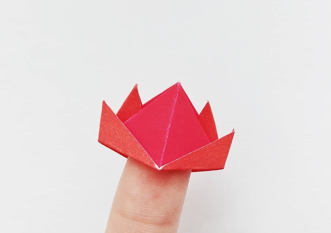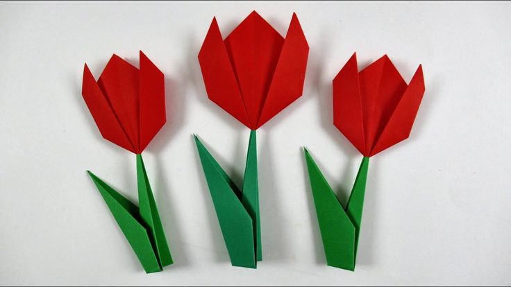 Tulips definitely represent Japan but they are not from there. To create a tulip you need a square cut paper and fold them diagonally on both sides. Make a triangle with both sides of the same length and long base. Then fold the two long opposite sides of the triangle to give the shape of a petal.
