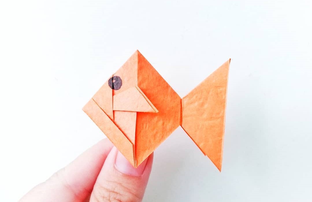 To create a cute paper fish, start with a square piece of origami paper in a bright, cheerful color. First, fold the paper diagonally to form a triangle, then unfold it. Next, fold it in half both horizontally and vertically to create creases for guidance. Fold it diagonally once more, keeping it as a triangle. With the pointed end facing upward, bring the bottom corners of the triangle up to meet the top point, shaping the fish’s body and tail. Adjust the tail folds to make it symmetrical and well-defined. For a fun finishing touch, draw an eye with a marker or stick on a googly eye, and decorate the fish with colourful patterns or scales. This easy and adorable paper fish is a perfect activity for kids and makes a delightful addition to an underwater-themed craft project or decoration.