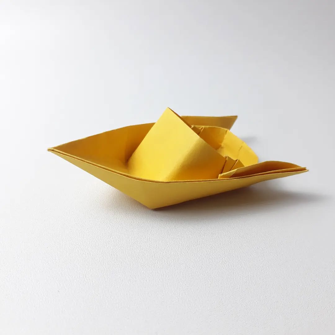 To make a paper speed boat, start with a rectangular sheet of paper. Place it horizontally on a flat surface. First, fold the paper in half lengthwise to create a crease, then unfold it. Next, fold it in half vertically to form a centerline. With the folded side facing you, fold the top corners downwards towards the centerline, creating two triangles that form a pointed top. Fold the bottom edge of the paper upwards on both sides, overlapping the triangles to secure the shape. Then, open the bottom and flatten it into a diamond shape. Fold the bottom corners of the diamond upwards to create a triangular boat shape. Gently pull the sides apart and press the base flat to form the hull of the speed boat. Adjust the folds to ensure the boat stands upright. Your paper speed boat is now ready to float on water or be used as a creative decoration!