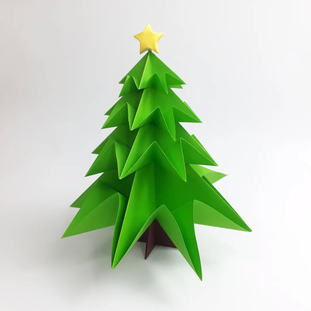 This craft is perfect for December. To make an X-mas tree you will need 4 square pieces of paper of progressive size i.e., small to big. Fold them specifically and, make sure it make a cone shape. Try to make a cone with crooked edges and then place the smaller cone above the bigger one.