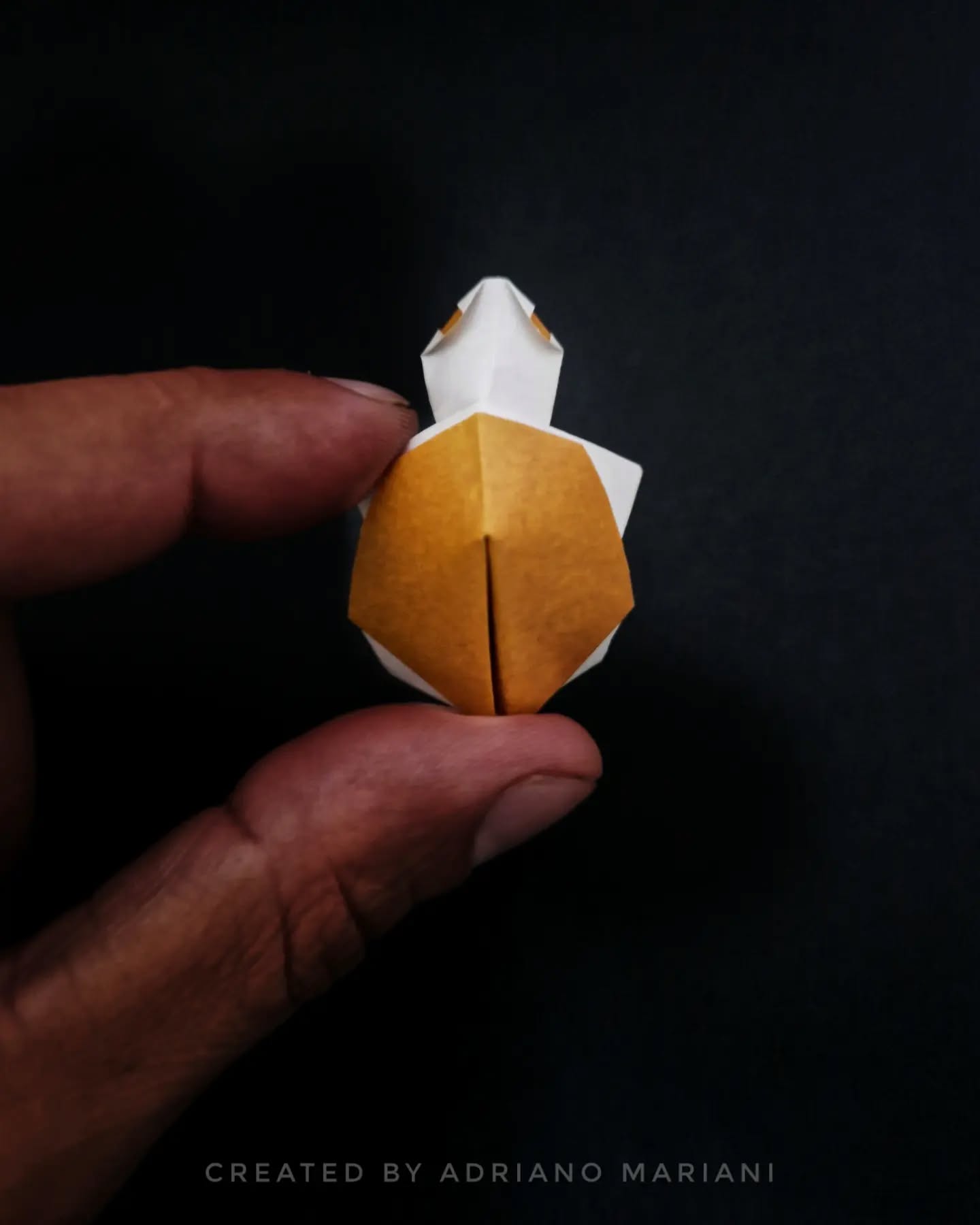 To create a paper turtle, start with a square piece of origami paper, ideally green for a natural look. First, fold the paper diagonally to form a triangle, then unfold it and repeat the fold in the opposite direction to make clear creases. Fold it in half vertically and horizontally to add more crease lines. Next, bring all four corners toward the centre to form a smaller square. Then, fold these corners inward once more to shape a shell-like design. To make the head, pick one corner and fold it outward. For the legs and tail, fold the remaining corners outward and adjust their angles for a lifelike appearance. Finally, use a marker to draw details such as eyes or a shell pattern. This easy and enjoyable origami turtle is a perfect project for beginners!