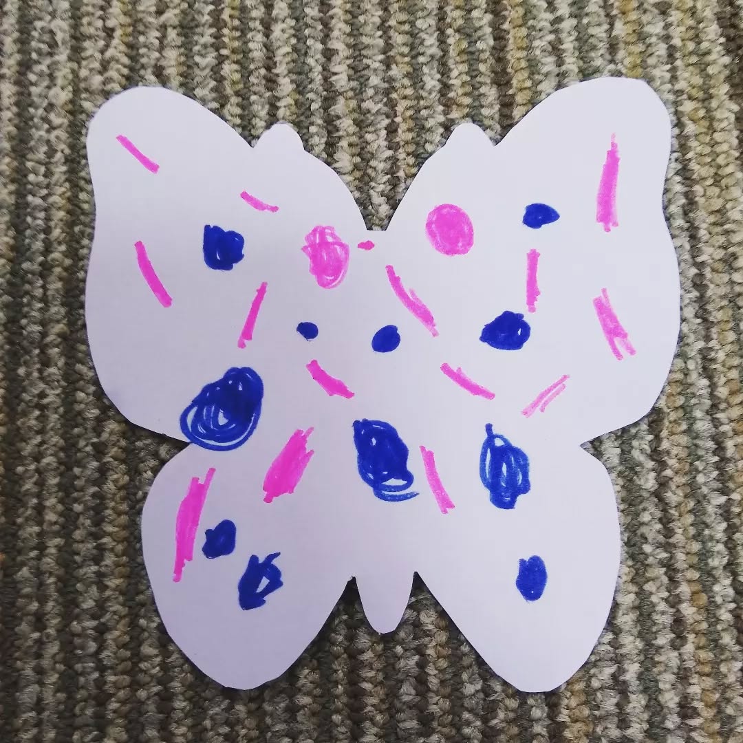 This is a simple butterfly paper cut out with touch of wax crayon colour.