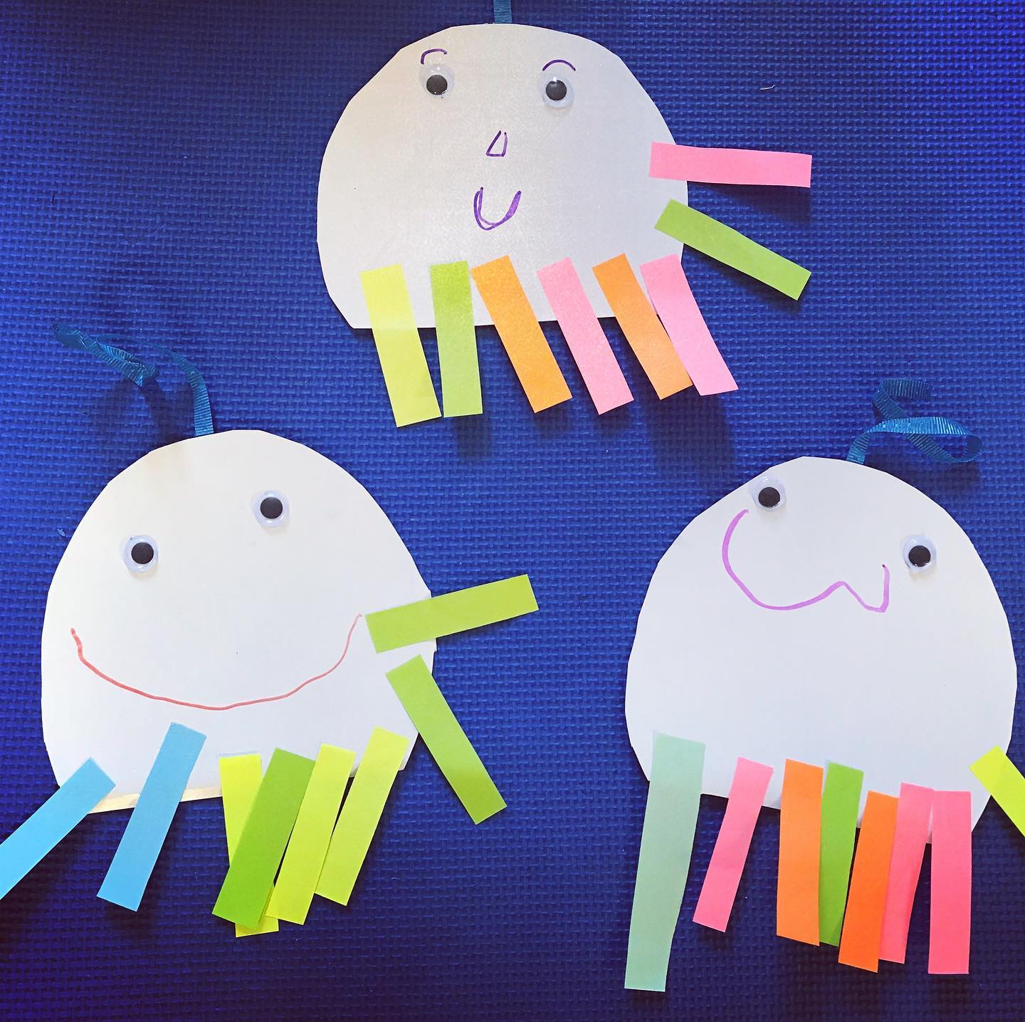 To make these cute jellyfish crafts, start by cutting out a simple round shape from white paper to serve as the jellyfish’s body. Next, glue on two googly eyes near the top of the circle to give it a playful look. For the jellyfish tentacles, cut colorful strips of paper in various bright colors, such as pink, green, and yellow. Glue these strips to the bottom edge of the paper circle, allowing them to hang down like tentacles. Then, use markers to draw a cute smile or other facial features on the jellyfish’s face. Lastly, for an added touch, you can attach a small ribbon or string to the top of the jellyfish to make it look like it’s floating. This simple craft is perfect for kids and can be a fun way to celebrate ocean-themed activities!